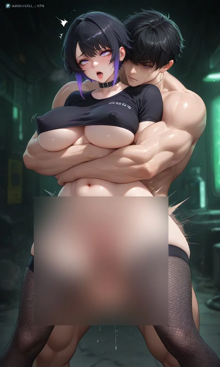 The atmosphere inside the underground laboratory was still thick with the heat of lust. The scent of sweat, bodies, and the sharp smell of cum still hung in the air, mixing with the dim, faintly pulsing blue light. The soft light cast shadows on their naked bodies, still intertwined on the cold metal bed.